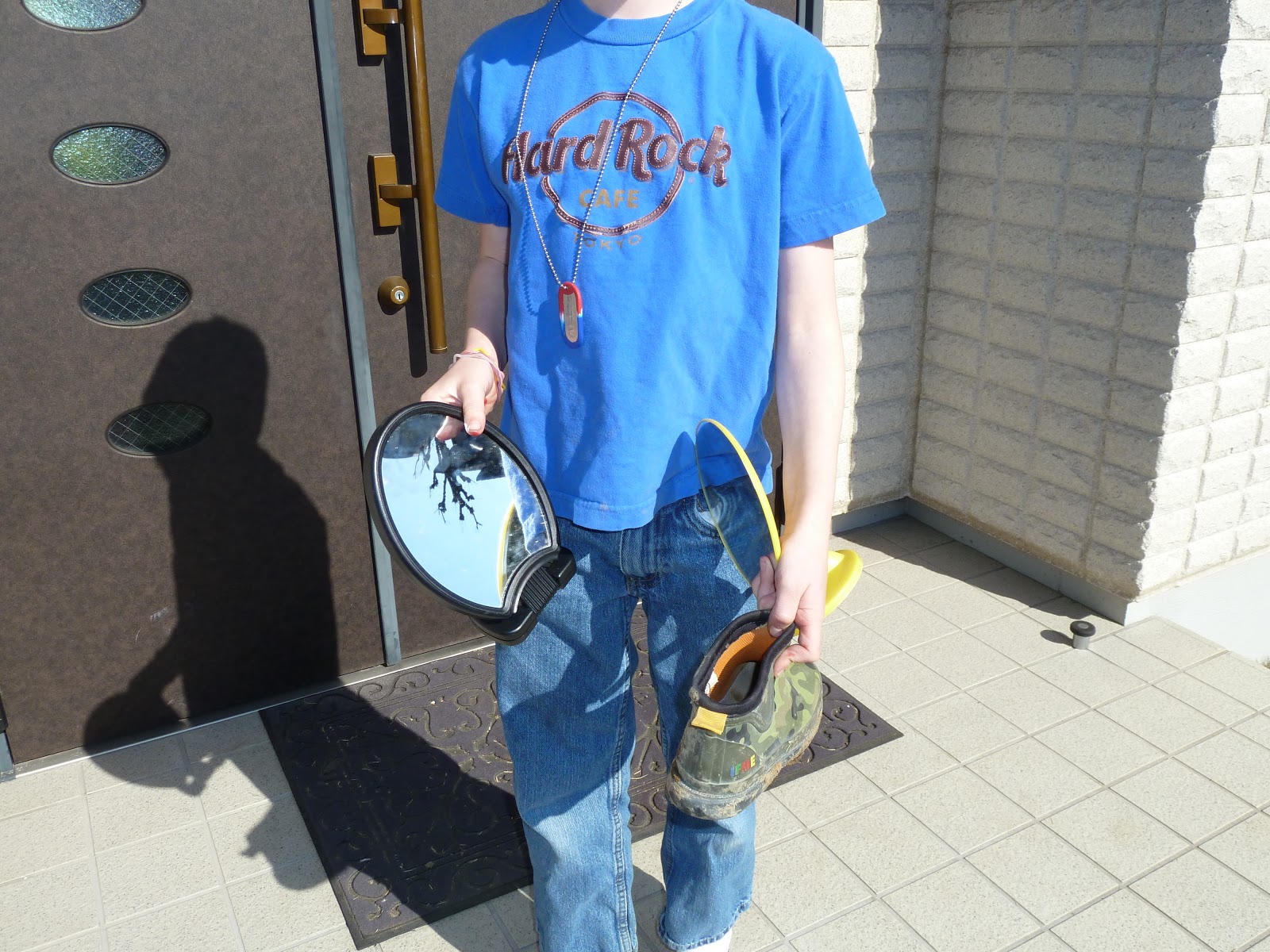 So, what does William do when he's not at school? I saw him racing out of the house with a couple mirrors, one of them being my make up mirror.
